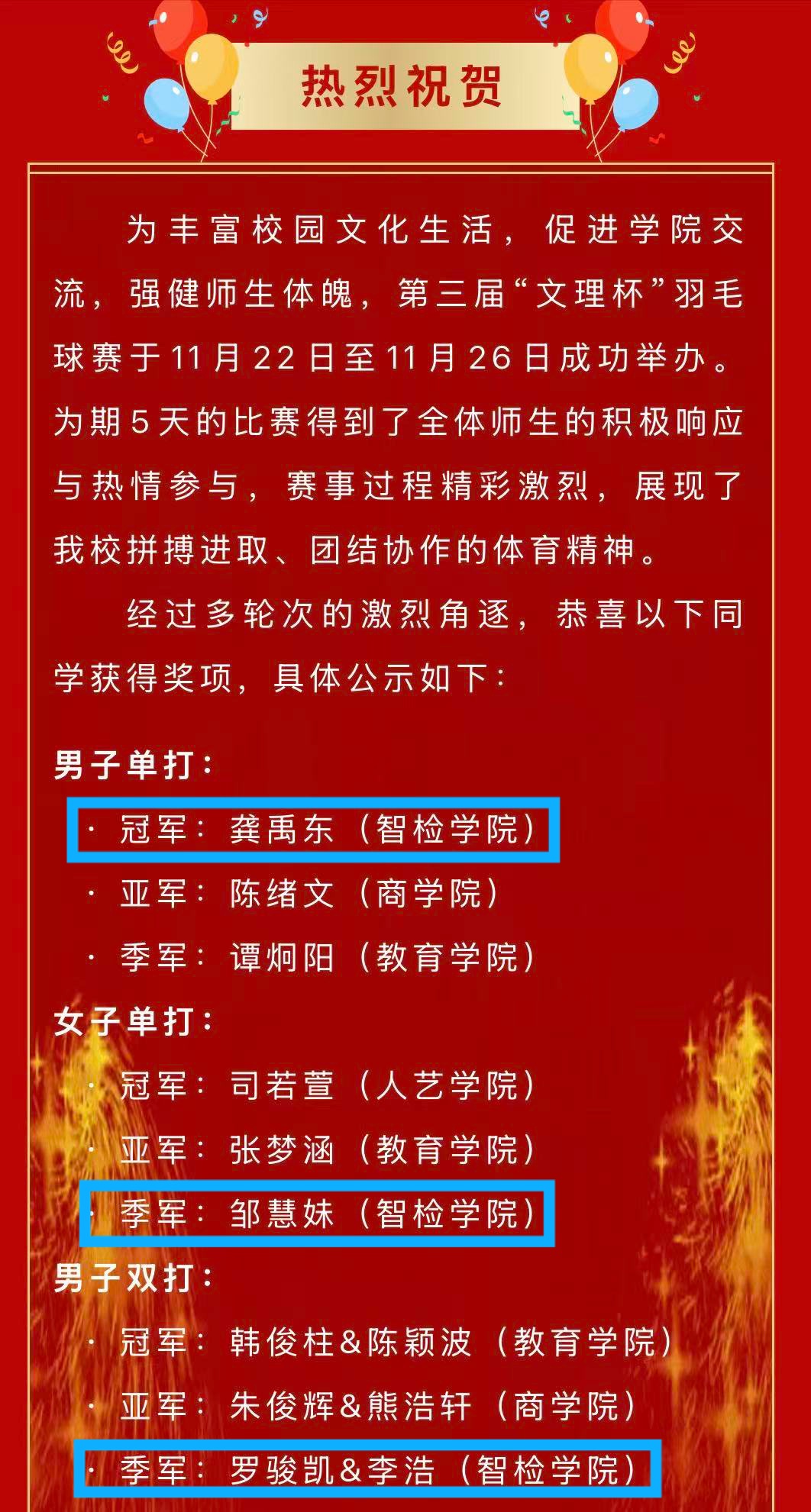 近日,yl6776永利集团第三届“文理杯”羽毛球赛圆满...[详情]