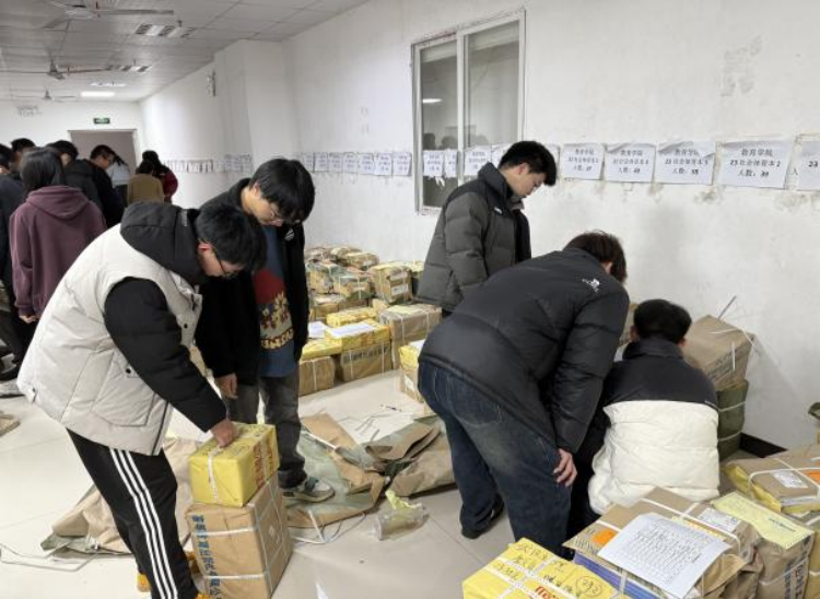 当天,志愿者们早早集合,严格按照预定流程进行准备。新书的整理、书籍的搬运、现场的引导和分发,每一项工作都井然有序。为了帮助同学们顺利领取到自己的教材,志愿者们用耐心和微笑迎接每一位到场的同学,并在现场提供详细的指引。即使面对人流如织的现场,大家依然保持着高度的热情与耐心,确保每位学生能够在短时间内顺利找到自己的书籍。