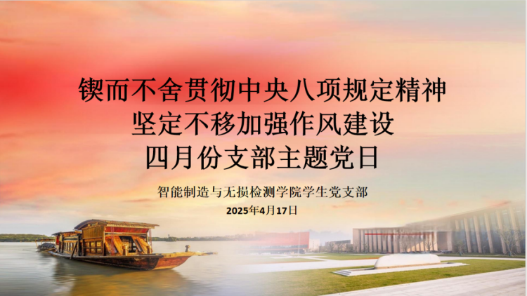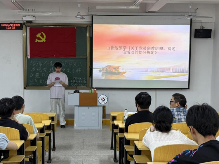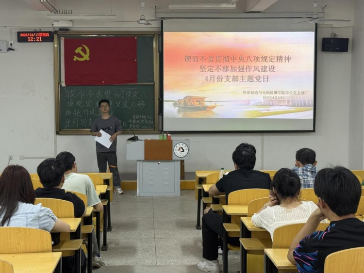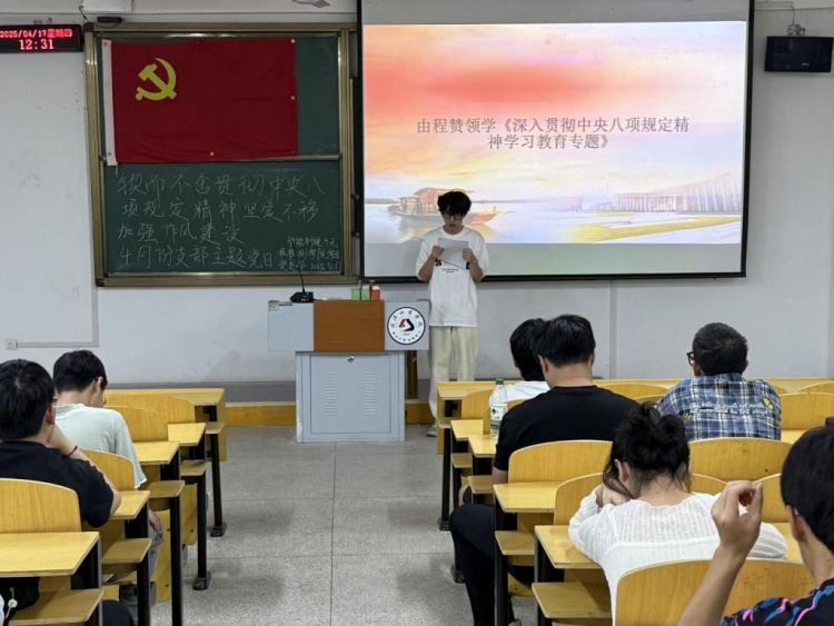 为深入贯彻中央八项规定精神学习教育,持续加强作风建设,智检学院学生党支部于4月17日在5号楼124教室召开了四月份主题党日活动。全体正式党员、预备党员、发展对象和入党积极分子全程参与,学生党支部书记方腾主持会议。