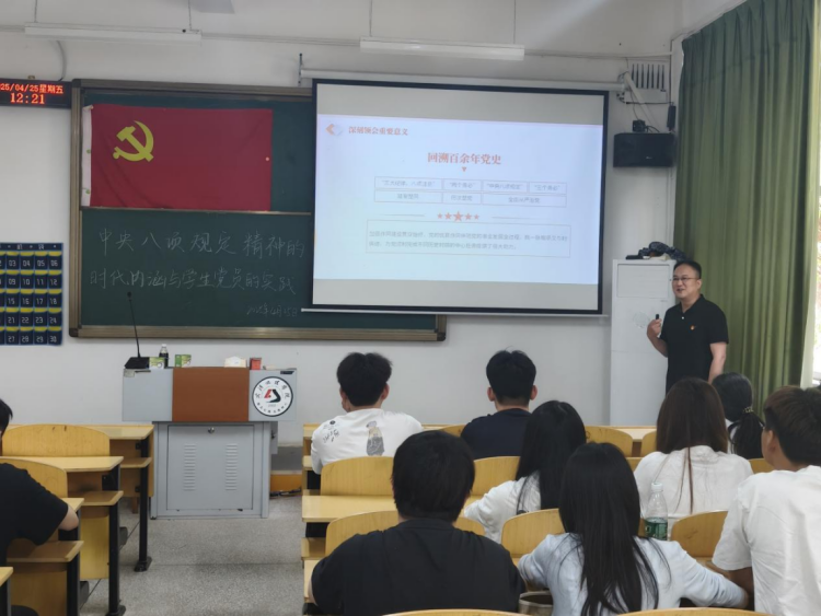 在作风建设方面,人文艺术学院党总支书记谭辉军结合学校管理和学生活动的真实场景,围绕“中央八项规定精神的时代内涵”进行了深入分析,阐释节俭务实、廉洁自律在校园生活中的具体践行;6776永利集团学生党支部宣传委员孙丰则以“新时代学生党员的责任与担当”为题,分享了志愿服务和科技创新中的鲜活案例,激励学员要在点滴行动中彰显先锋本色。