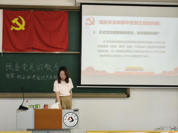 在纪律教育环节,人文艺术学院党总支书记谭辉军再次登台,以典型违纪事例为镜,强调“党章、党规、党纪是每位党员必须遵守的底线”,帮助大家在思想上筑牢基石;党委组织部郑娟老师则带来“预备党员的教育、考察与转正及组织关系转接”的全流程指导,她将详实的步骤和考察要点娓娓道来,并现场模拟填写入党志愿书、组织关系介绍信等表格,让学员们加深熟悉每一项细节。