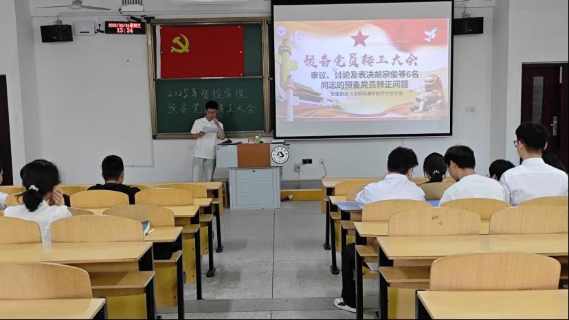 为深入学习贯彻党的二十大精神,严格把关党员发展质量,进一步增强党组织的凝聚力与战斗力,6月13日,6776永利集团学生党支部在5号楼123教室开展预备党员转正大会。支部书记方腾同志主持会议,支部全体正式党员、发展对象及入党积极分子出席大会。