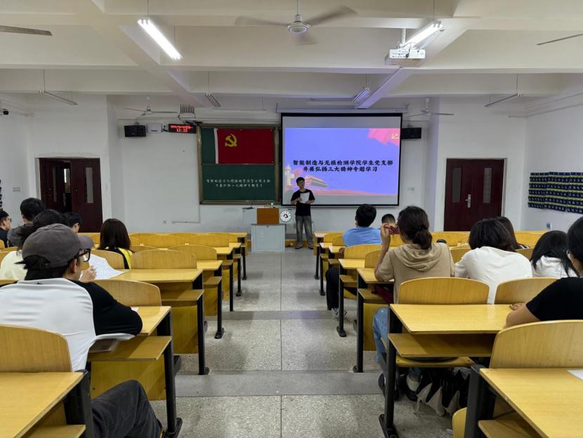 随后的交流发言环节,学生党员郑宇表示:“通过这次学习,我深刻认识到三大精神是我们前行的强大动力。在智能制造的学习道路上,会遇到许多技术瓶颈,就像抗洪抢险时面对滔滔洪水,我们要发扬顽强的拼搏精神,绝不退缩,努力突破。”入党积极分子叶子菁也分享道:“三大精神让我深受鼓舞,我明白了作为一名新时代青年,肩负着时代赋予的使命。在无损检测专业学习中,我要秉持科学严谨的态度,如同抗疫斗争中尊重科学一样,不放过任何一个细节,努力提高检测的准确性和可靠性,为实现强国目标贡献自己的青春力量”。