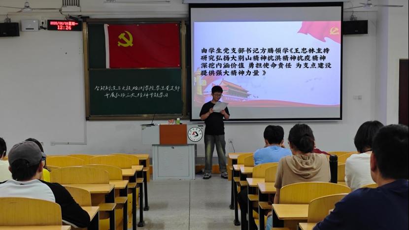 为深入学习贯彻习近平新时代中国特色社会主义思想,加强学生党员与入党积极分子的思想建设,智检学院学生党支部于6月9日,开展了以弘扬大别山精神、抗洪精神、抗疫精神为主题的专题学习活动。本次活动由学生党支部书记方腾主持并领学,全体学生党员及入党积极分子参与其中。