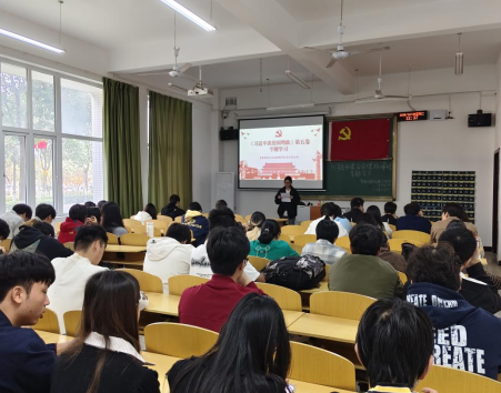 在“如何学”的讲解中,方腾书记强调,必须坚持“读原著、学原文、悟原理”的根本方法,将第五卷与前四卷作为有机整体系统研读,把握“总论—分论—保障”的逻辑框架:以党的二十大报告为总论锚定方向,以经济、政治、文化等17个专题为分论明晰路径,以“坚持和加强党中央集中统一领导”为保障筑牢根基。同时,要紧扣学院专业特色,推动理论学习与专业实践深度融合,将学习成果转化为提升专业能力、服务行业发展的实际行动,真正实现学思用贯通、知信行统一。