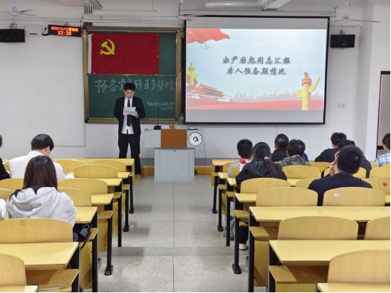 随后,五名预备党员依次登台汇报。他们围绕预备期内的思想淬炼、理论学习成效、工作实践表现及生活作风建设等方面,全面复盘成长历程,深情回顾党组织的悉心培养,深刻剖析自身在理论深度、实践能力等方面存在的不足,同时坚定表达了恪守入党初心、锤炼过硬党性、争做合格党员的决心。汇报内容真挚务实、信念坚定,展现出新时代青年党员的责任担当,赢得现场师生的阵阵掌声。