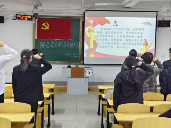 随后,在方腾书记的带领下,全体正式党员与新转正党员面向鲜红党旗,高举右拳、庄严宣誓。铿锵有力的誓言响彻会场,既是对共产主义事业的坚定承诺,也是对初心使命的再次叩问,彰显出新时代党员砥砺前行的信念与担当。