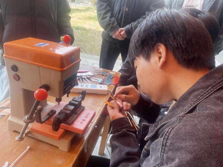 在3号楼大厅的服务点上,由数名机械设计制造专业学生组成的志愿服务团队俨然成为校园闪亮的星。他们操作着数控钥匙机,将工科专业的优势转化为民生服务实践。精密测量、模具选配、锉刀加工,每个环节都彰显着智能制造时代的工匠精神。活动首日即接待师生150余人,配制的200余把钥匙中,既有传统弹子锁,也包含宿舍及办公室的防盗锁等。