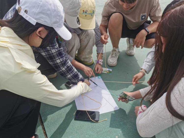 幻灵心界,同样考验团队协作能力,每组6人手拉手形成闭环,共同牵引一支笔在画布上绘制指定图案。这一过程需要高度的默契与协作,稍有不慎,线条就会断裂。同学们在屏息凝神的配合中,不仅完成了一件件精美的艺术创作,更在无形中深化了彼此之间的理解与信任。