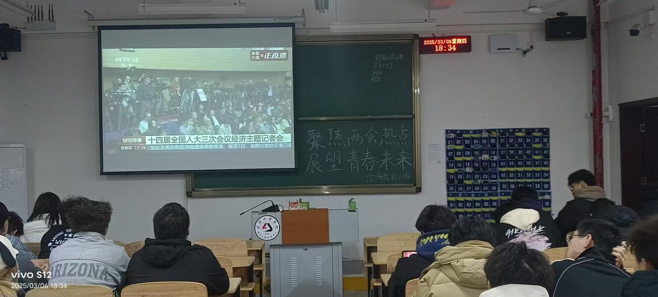 观看后,同学们积极发言,分享自己的观看感受和体会。2024级新能源汽车技术5班班长朱照阳说道:“听了政府工作报告,我深刻感受到国家对科技创新的高度重视。作为一名新能源汽车专业的学生,我深感责任重大。在今后的学习中,我将更加努力,掌握扎实的专业知识,为将来投身国家制造业贡献自己的一份力量。”辅导员李林蔚也参与讨论,鼓励学生:“新时代大学生肩负着时代赋予的使命,不能只着眼于个人发展,更要心系社会民生。大家应借助此次学习契机,把两会精神融入日常学习,为促进社会公平正义、改善民生福祉贡献自己的力量”