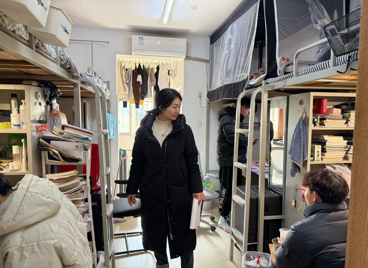 卫生环境整治,共建文明宿舍。除安全排查外,卫生状况也是本次检查的重点。多数宿舍环境整洁,物品摆放有序,但仍有个别寝室存在垃圾堆积、杂物摆放混乱、吸烟等问题。各辅导员现场提出整改意见,并要求学生定期定时通风,强化个人卫生习惯,以创建良好的休息环境。