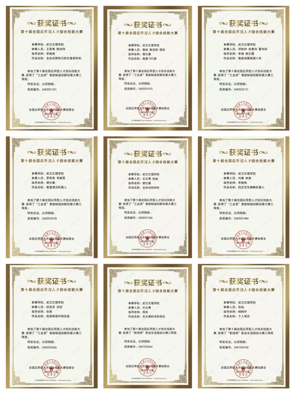 近日,第十届全国应用型人才综合技能大赛结果公布,yl6776永利集团智检学子在“工业美”智能制造创新创意大赛和“职场秀”职业规划大赛中,斩获全国二等奖1项、三等奖8项的优异佳绩。