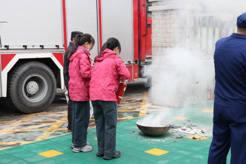 活动伊始,消防队员们为现场观众展示了一场紧张而有序的消防灭火环节。他们详细介绍了灭火器的种类、使用方法以及在不同火源下的灭火技巧,并演示了如何正确使用灭火器进行灭火。随后,在消防队员的指导下,幼儿园老师们亲身体验了灭火操作,他们成功地扑灭了模拟火源,进一步加深了对消防知识的理解。