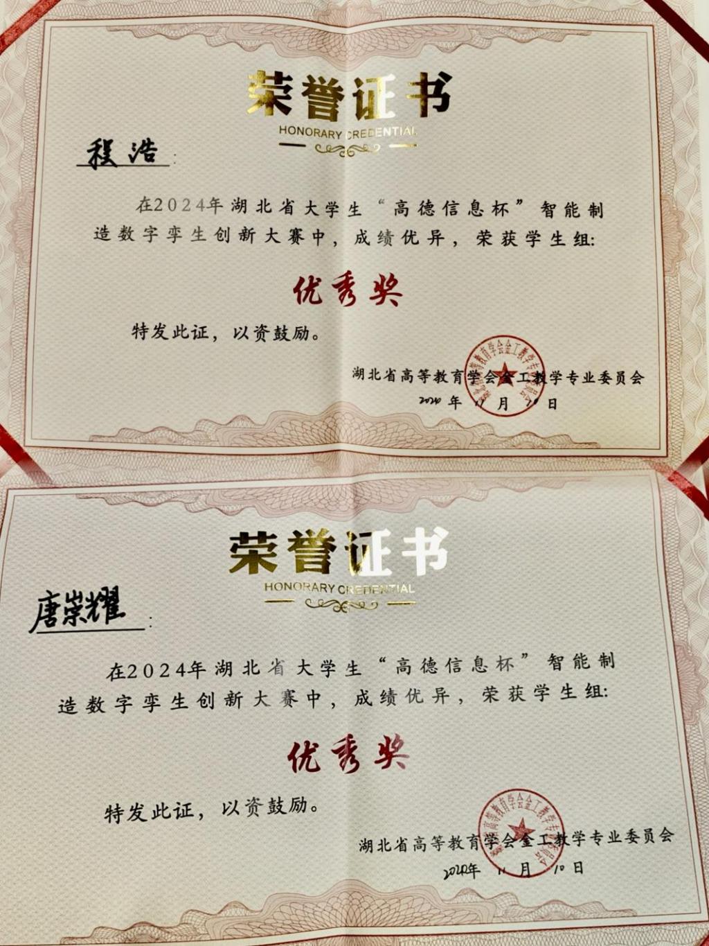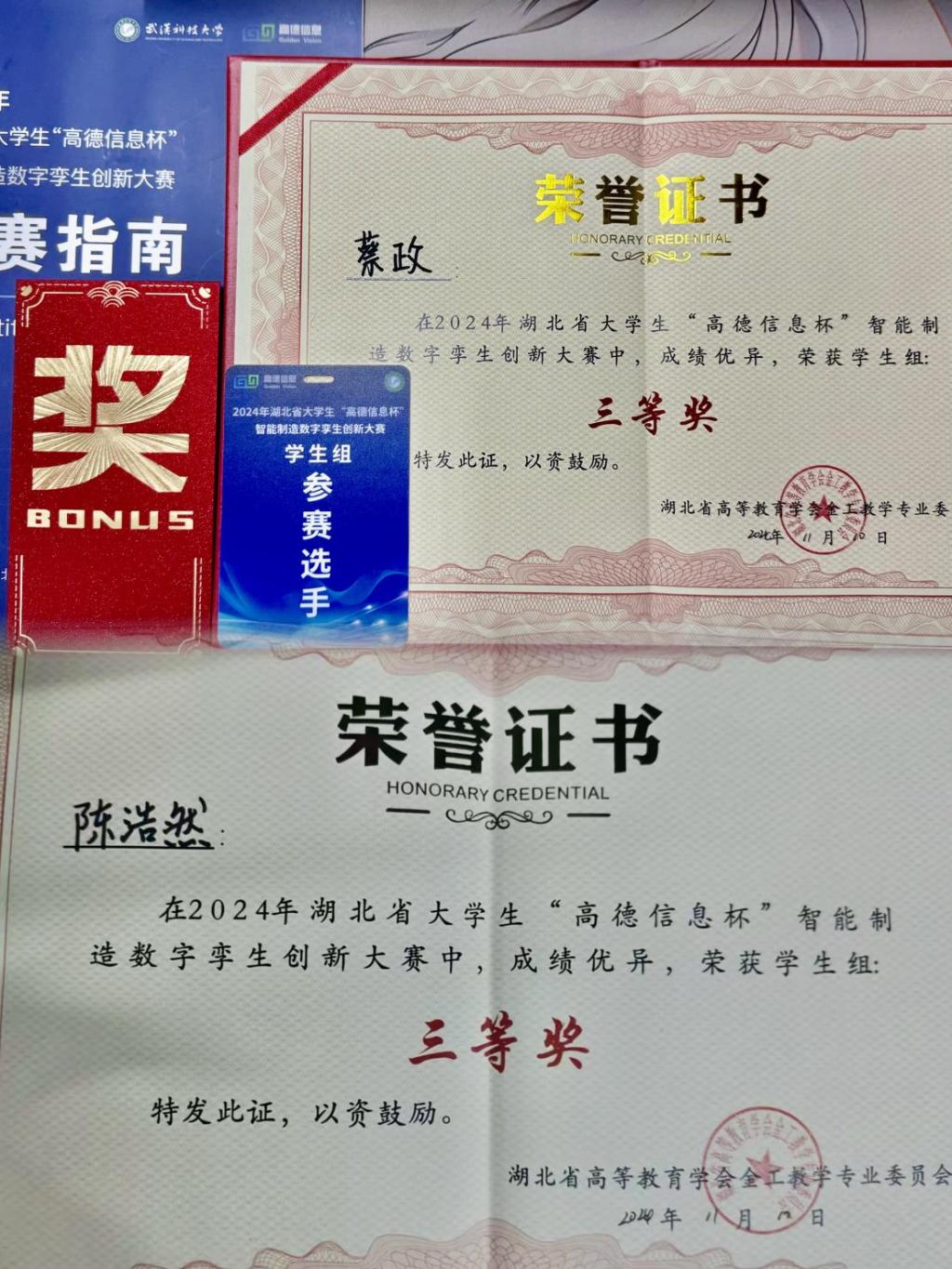 当天,经过学生现场实操和教师答辩环节,最终蔡政、羿翔两支代表队分别荣获智能制造数字孪生创新大赛学生组三等奖、程浩组荣获学生组优秀奖、樊仕豪老师荣获教师组优秀奖。