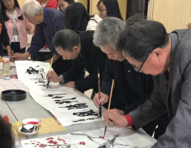 当天,老年大学学员与同学们一同参与了书画作品的创作与鉴赏。活动现场,他们纷纷挥毫泼墨,展示着书法与绘画的多彩技艺,彼此领略书画艺术的魅力与精髓。有的同学笔法遒劲有力,仿佛重现了古代书法大师的风采;有的同学精心磨墨,映照出古代文人墨客练字时潜心钻研的场景;有同学选择了富有意境的水墨画,用墨水勾勒出一幅幅层峦叠嶂、清晰分明的山川丘壑。