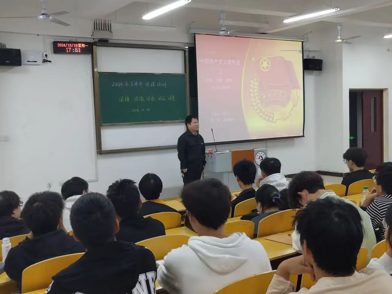第四讲,孙丰老师为大家详细介绍了团旗、团徽、团证、团费的象征意义与重要性,还亲自教唱了团歌。在孙丰老师的带领下,同学们齐声高唱,激昂的旋律回荡在教室的每个角落。那一刻,大家的心中都充满了对共青团的热爱与自豪。