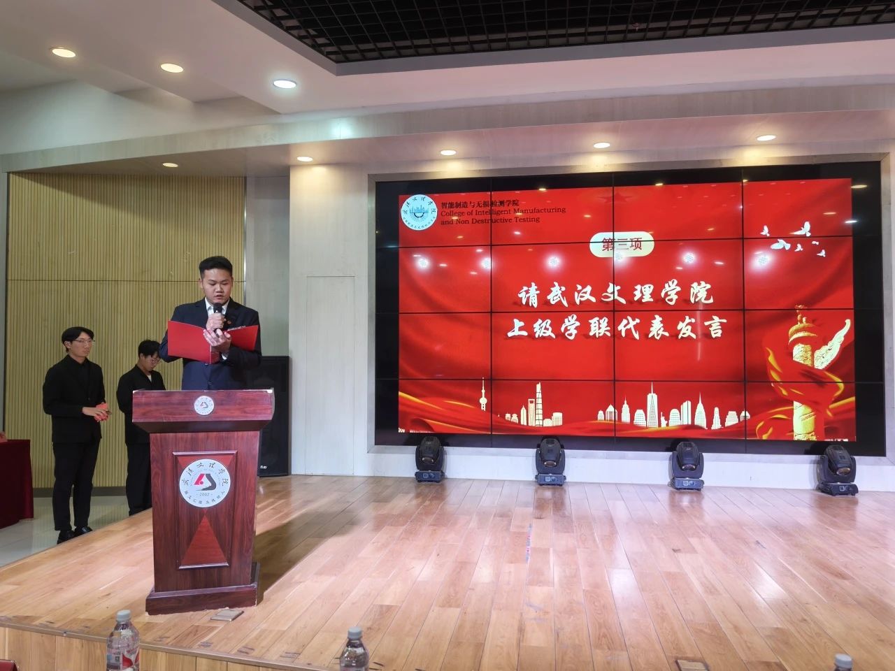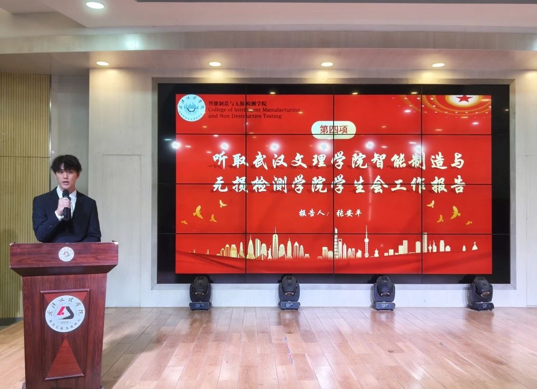 接着,由上级学联代表柴佳庆同学上台发言。他回顾了上一学年学院与校团委之间的紧密联系与合作,对我院学生会的工作给予了极大认可。同时,他也对新一届学生会提出了宝贵建议,希望他们能够继续加强与学生之间的沟通与交流,倾听学生声音,维护学生权益。