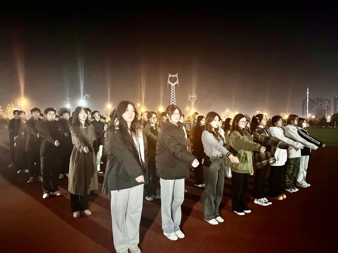 深秋夜晚,寒风拂面。在排练过程中,同学们不畏凉意,不惧疲惫,相互鼓励和支持。面对阻力和挑战,他们没有退缩,而是勇于向前,共同攻克了一个又一个难点。通过无数次的磨合与调整,方阵的队形、动作、步伐逐渐走向完好。
