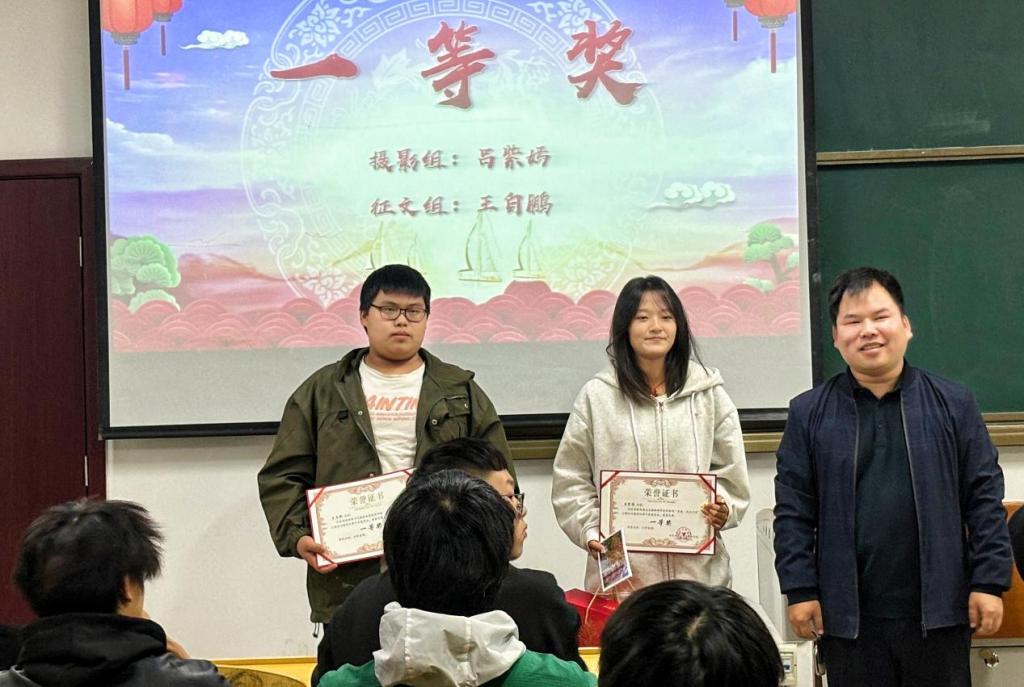 会上,刘德羽首先宣读了本次征文及摄影比赛的一、二、三等奖及优秀奖获奖名单。在热烈的掌声中,孙丰和李林蔚分别为获奖同学颁发了荣誉证书和奖品,对参与同学的优秀表现给予了充分肯定和鼓励。