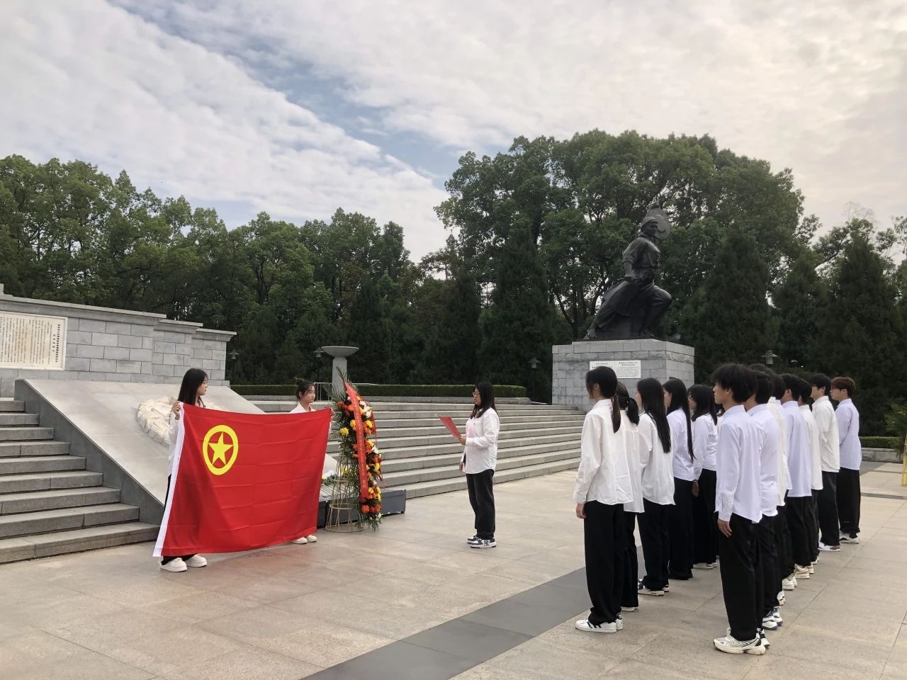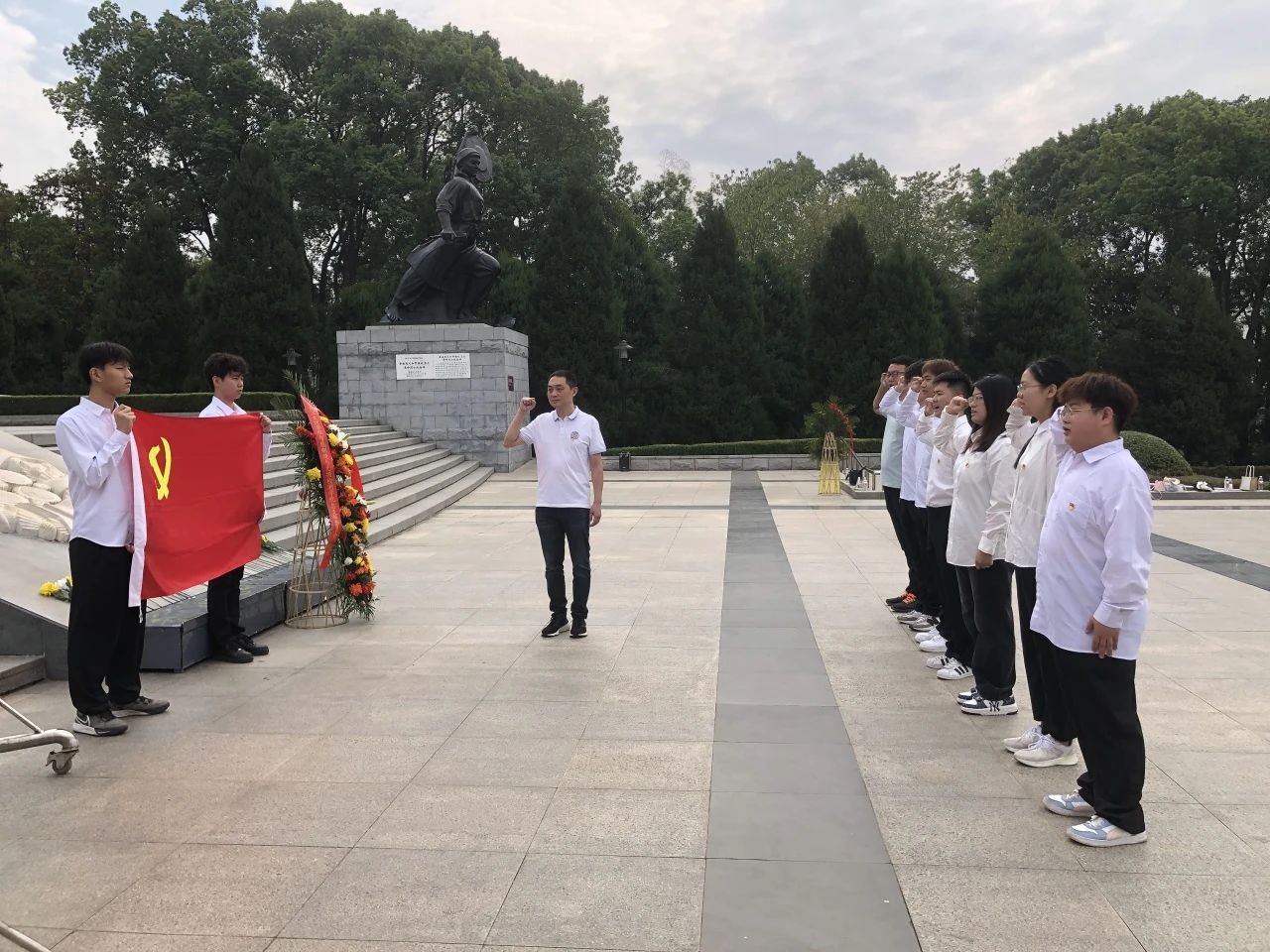 10月12日清晨,阳光洒满大地,由学院党总支书记韩玮领队,全体人员带着庄严的心情,踏上了前往纪念园的旅程。一路上,大家谈论着对革命历史的了解和对革命先烈的敬仰,车厢内充满了浓厚的革命氛围。抵达园区后,师生们在巍峨的革命烈士纪念碑前集合,举行了庄严的祭奠仪式,向革命烈士敬献花篮,党员同志和青年团员在纪念碑前重温入党和入团誓词,以此表达对革命先烈的无限缅怀和崇高敬意。
