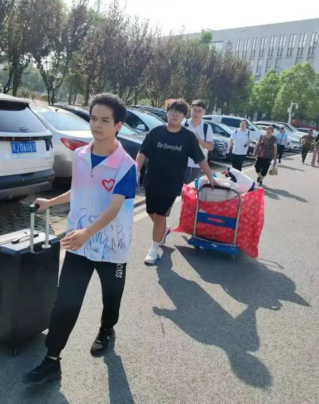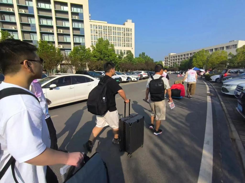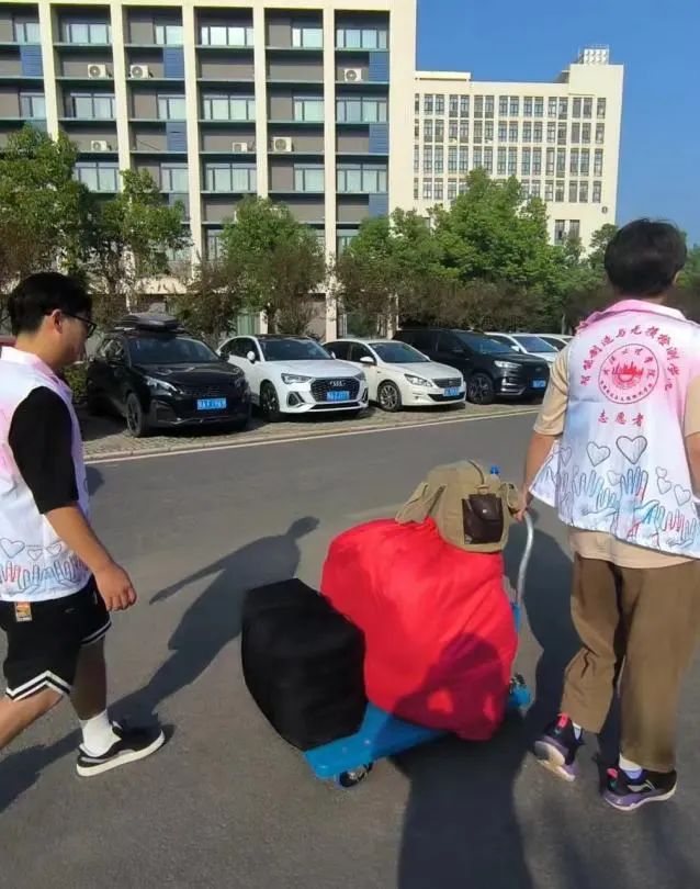 志愿者们也不甘落后,他们忙碌的身影穿梭于校园各处,大家见到我院新生就会主动上前,接过沉甸甸的行李,稳健地送往指定寝室。汗水浸湿了衣背,却挡不住他们脸上流露的真挚情感,这份无私的帮助,如同九月的微风,轻轻拂去新生的疲惫,让温情与爱心在校园里悄然传递延伸。