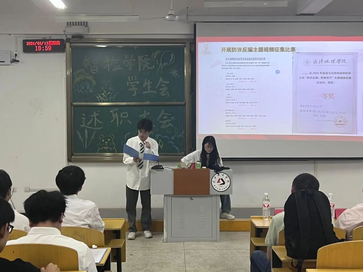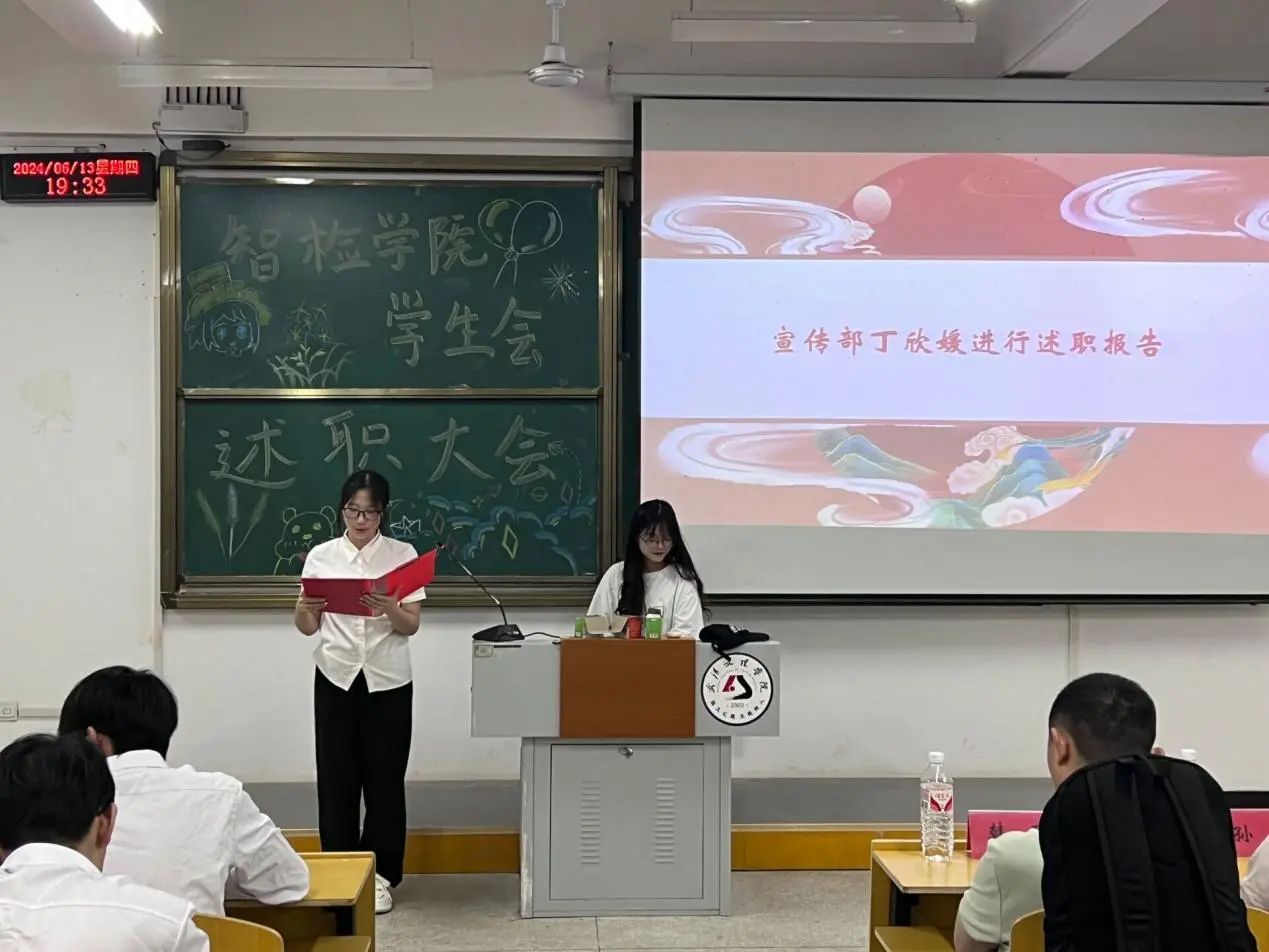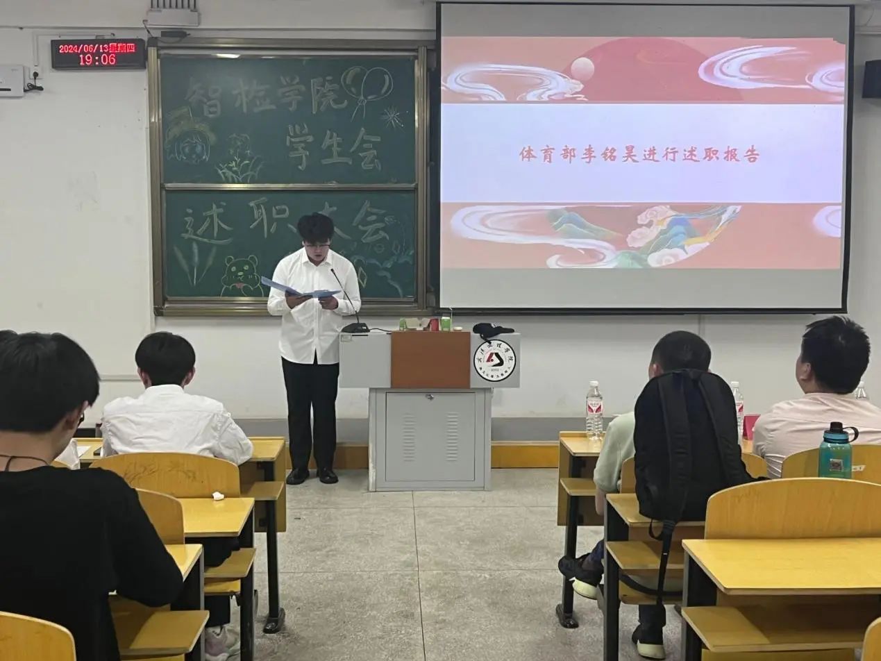 学生会副书记徐锦锋说道:在过去一段时间,学生会各部门都付出了辛勤努力,取得不少成绩。希望通过此次述职大会,大家能总结经验、查找不足,不断提升工作能力和水平。同时,也希望大家能继续保持积极向上的精神风貌,为学院营造更加良好的氛围。