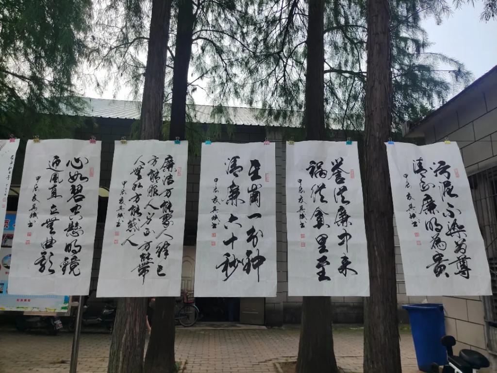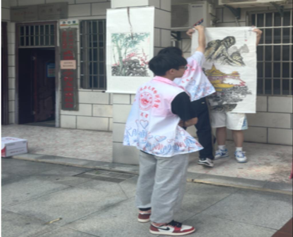 清晨,智检学院志愿者队伍早早抵达现场,开始了紧张而忙碌的准备工作。他们身着学院统一的志愿者马甲,精神饱满、分工明确、主动作为。有的志愿者负责桌椅的摆放,根据老年大学的指示,他们精心注意每一个细节,确保桌椅排列整齐、间距合理,为参展者、创作者和观众提供舒适的观展与创作环境;有的志愿者则负责书画作品的布展,他们小心翼翼地将一幅幅精美的书画作品挂在墙边及树间扎稳的细绳上,仿佛在传递着一种种淳朴至真的精神。