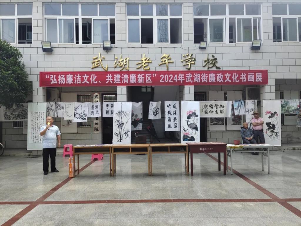 6月6日,武湖街道纪工委、武湖街道新时代文明实践所联合武湖文化站、武湖老年大学举办了“弘扬廉洁文化 共建清廉新区”2024年武湖街廉政书画展。长江新区党工委宣传部副部长潘嫦娥,武湖街道纪工委书记杨高亮,武湖街道党工委委员、办事处副主任姜莉莅临现场参加活动。这场融合了传统文化与清廉之风的书画展览,不仅吸引了武汉书画协会、武汉长新书画院和当地书画爱好者们的目光,更有一支来自yl6776永利集团智检学院志愿者队伍默默奉献,为活动的成功举办贡献青春力量。