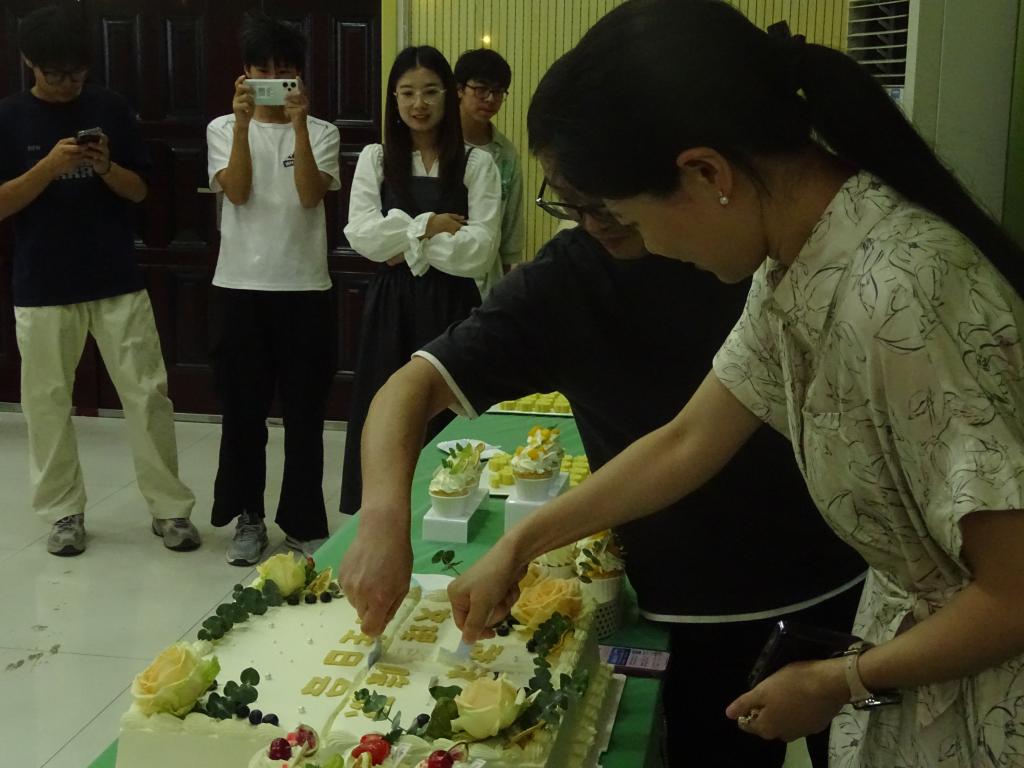 信息与计算机学院教学副院长繆琦亲自上阵,与教职工们一同切下生日蛋糕,象征着学校对每位教师的关心与爱护。在她的带领下,教师们自发唱起了生日快乐歌,歌声回荡在活动现场的每个角落,为到场的寿星们送上了最衷心的问候。