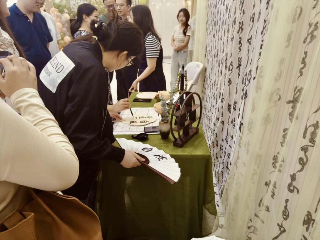 最后,教师们在会场的展览角各自进行书法、摄影等自由活动。这些不仅展现了教师们的艺术才华,也为大家提供了一个交流与分享的平台。现场氛围活跃而温馨,每个人都在享受着这份属于自己的生日快乐。同时,教师们谈到,这场集体生日会让他们感受到了学校的人文关怀,增进了同事之间的友谊与联系。