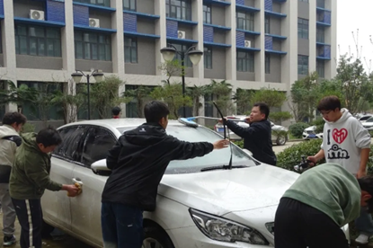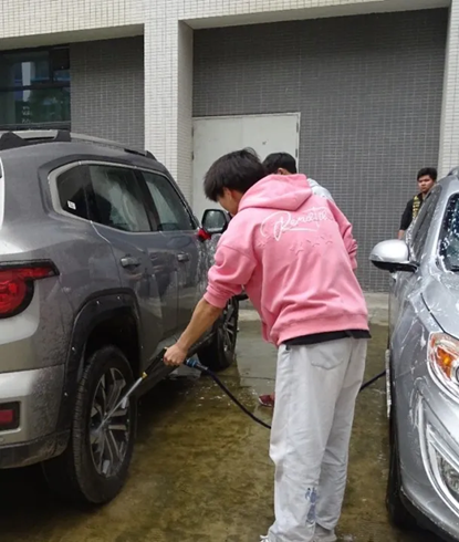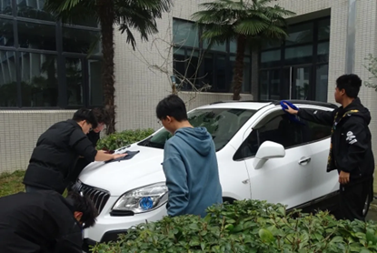 各司其职,师生共融。活动充分发挥“党带团”的党组织引领作用,极大激发了青年师生的活力与干劲。在活动中,智检学院院长李继高携教师队伍为洗车工作提供强有力的技术指导;党总支书记韩玮一马当先,亲赴现场指挥活动开展;团学人员负责联系“洗车预约人”前往排队;学工口老师有的负责指挥交通,有的指导拍摄照片,有的加入洗车行列;党员、团员、入党积极分子及志愿者队伍一起搬运物资用品、接设水管、勾兑清洗剂、清洁车辆。每个人都忙碌其中,全院上下团结一致,在整个活动中展现友爱互助,竭力奉献。