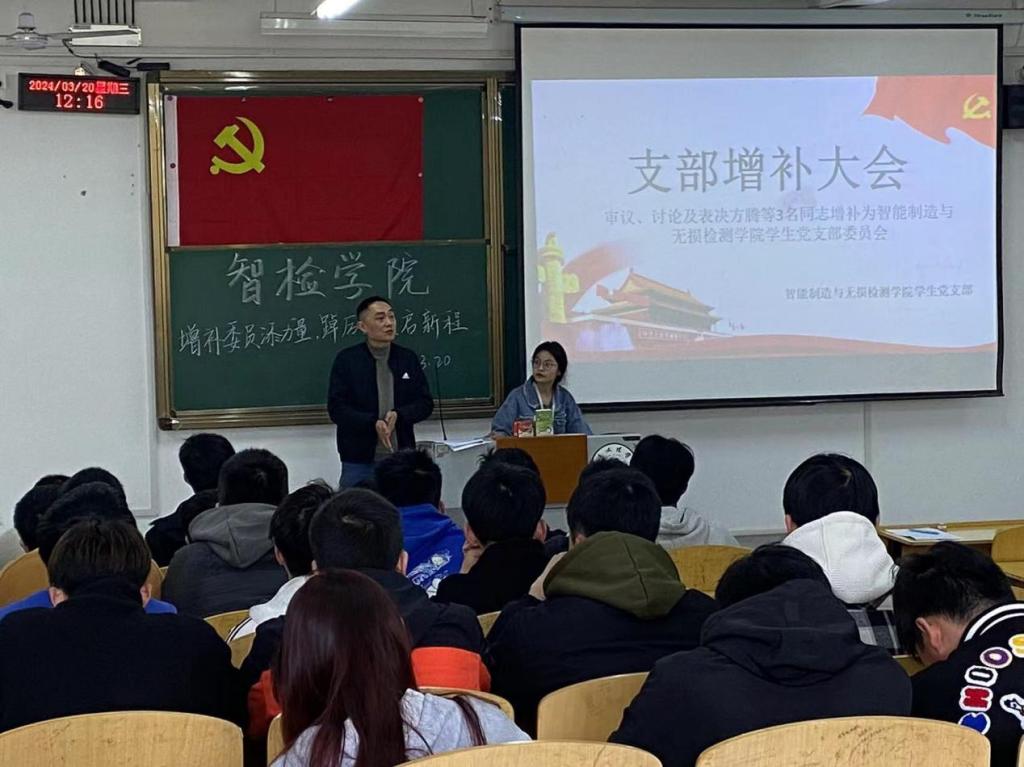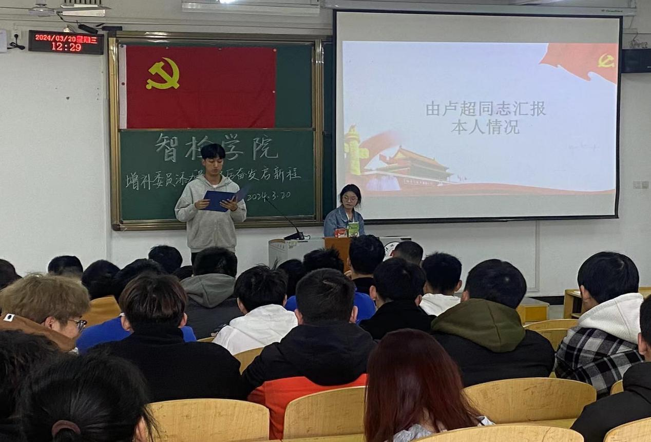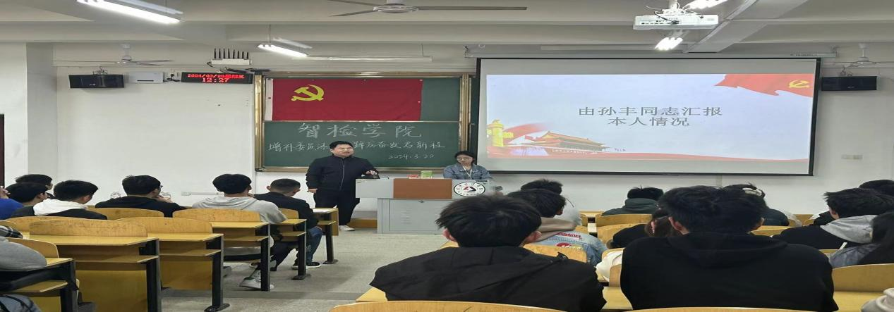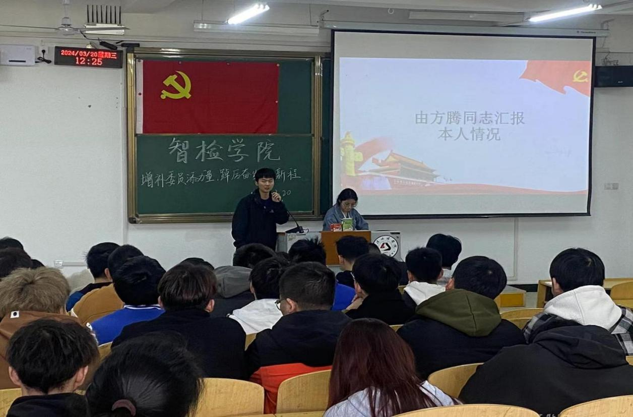 为进一步加强基层党组织建设,更好地发挥基层党组织的战斗堡垒作用。根据《中国共产党章程》《中国共产党基层组织选举工作条例》的有关规定,3月20日中午,智检学院学生党支部在5栋123教室召开了学生党支部支部委员增补大会。会议由智检学院党总支书记韩玮主持,学生支部党员及入党积极分子全体参与。