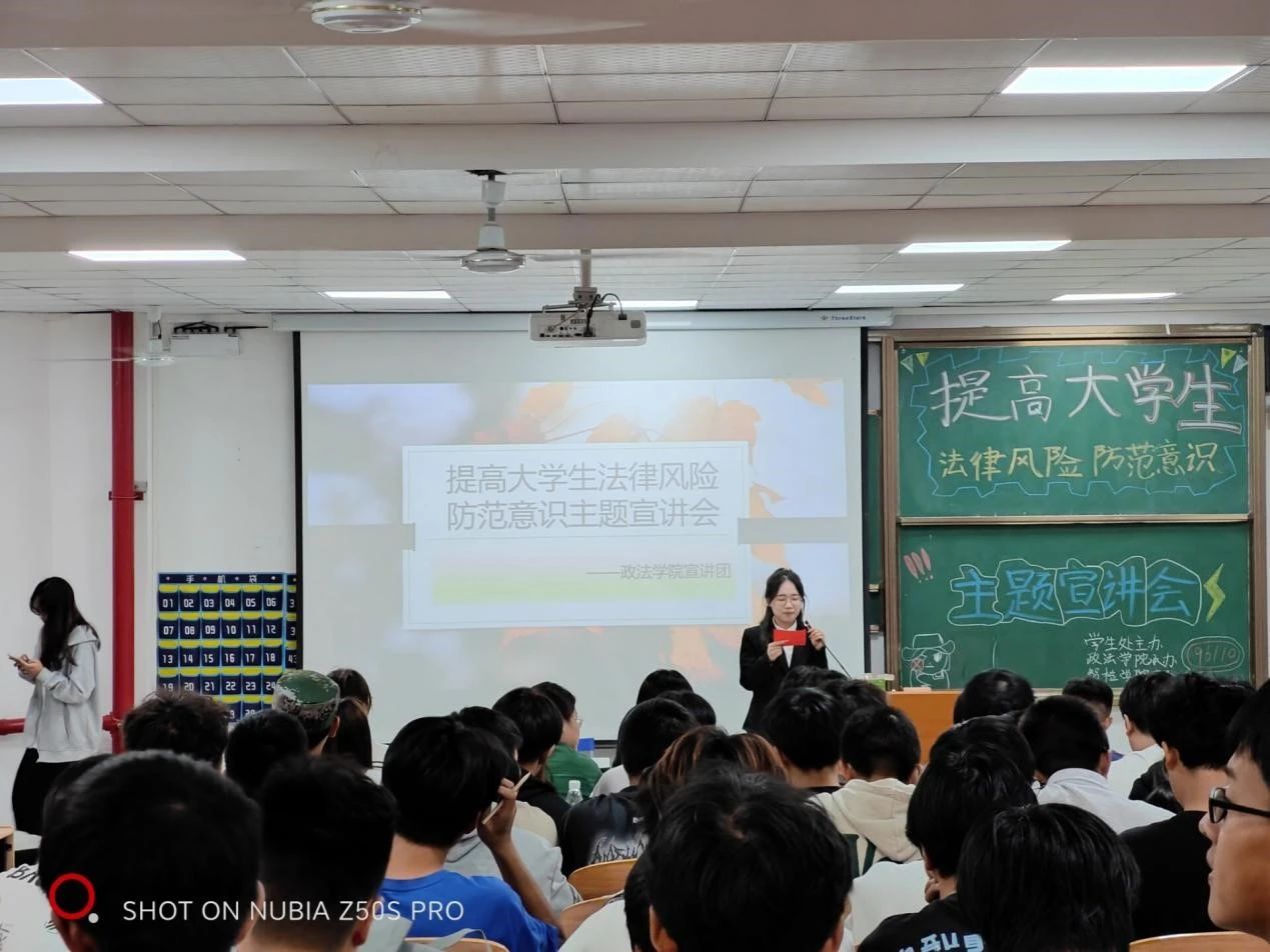 为了促进大学生法律风险防范意识,保护大学生日常生活中的个人权益免受侵害。11月2号晚在4号楼221阶梯教室,政法学院宣讲团受邀为6776永利集团召开了一场提高大学生法律风险防范意识的主题宣讲会。
