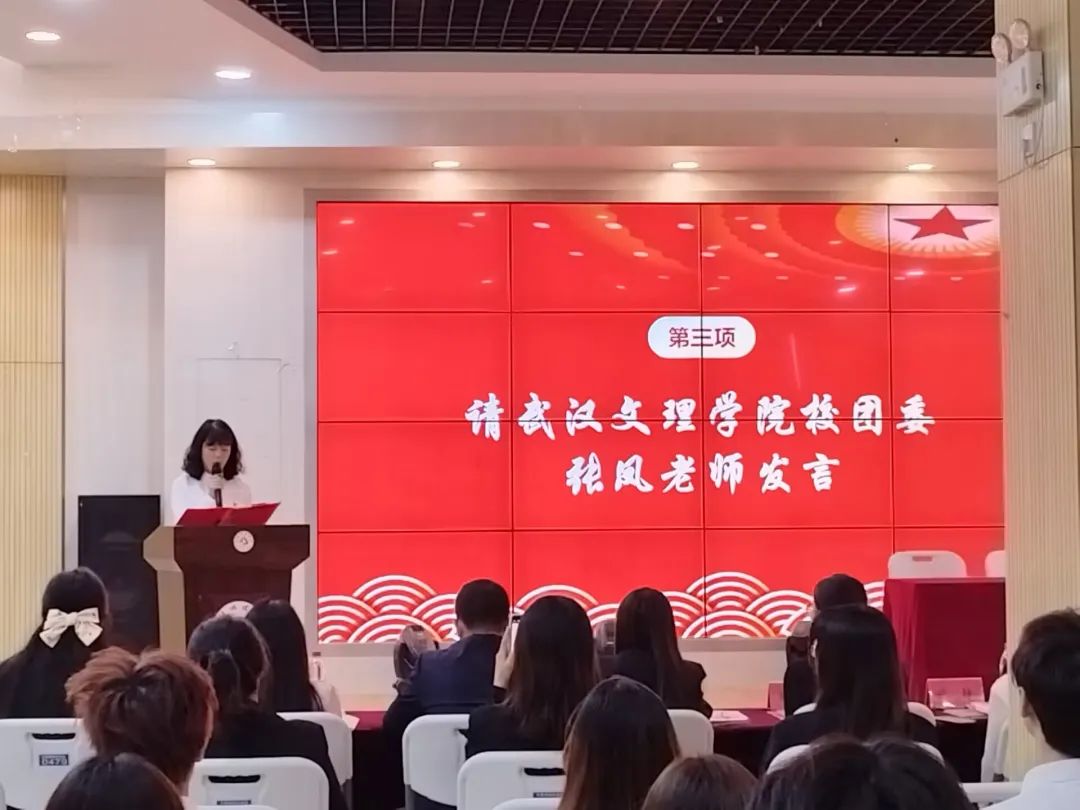 大会第二项由校团委张凤老师发言,张老师对学生会提出了“三个要点”的工作要求,对学生会主席团提出要真真实实做实事,对学生会干事提出要做好学生会的每一项工作,希望每一位同学在之后的工作中要互相沟通,团结互助。