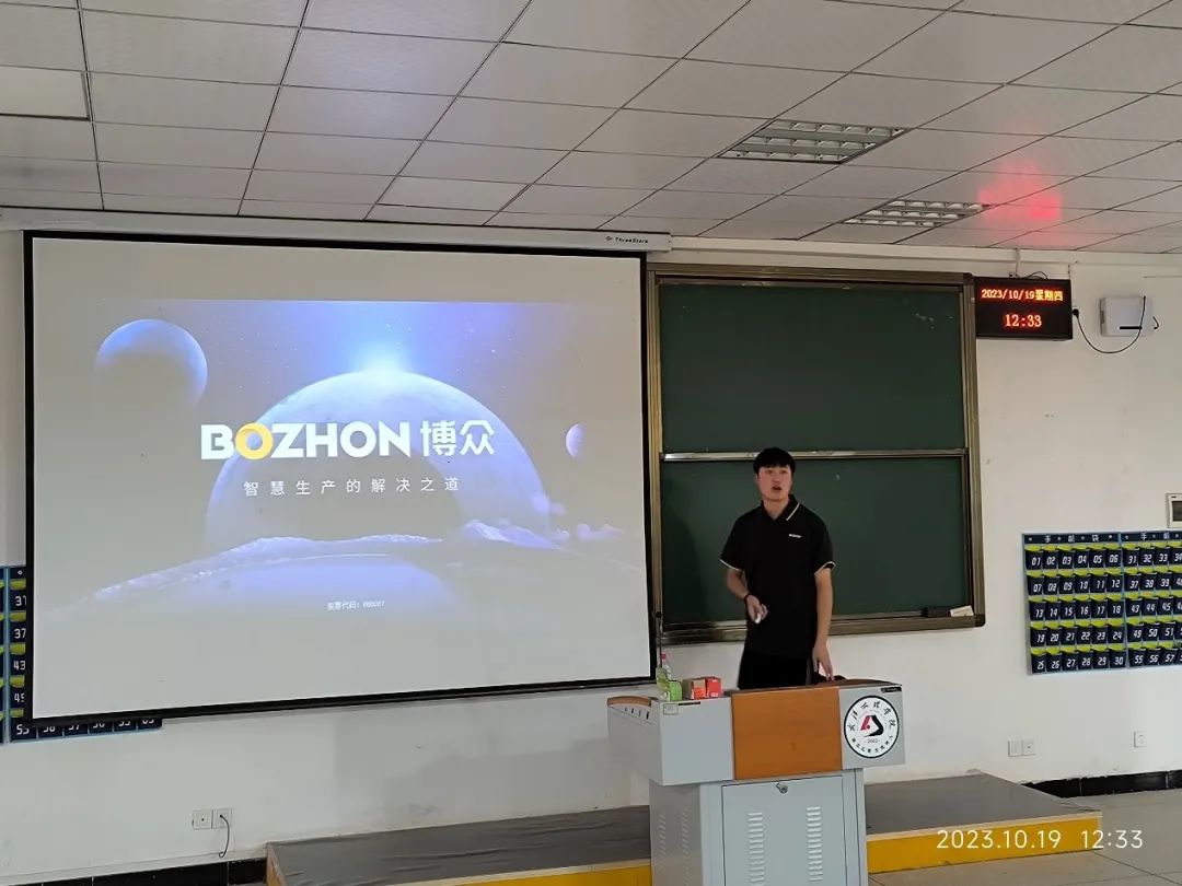 招聘会伊始博众精工科技股份有限公司占经理为大家介绍了公司的概况,公司业务集中在消费类电子、新能源汽车、半导体、关键零部件、智慧仓储物流等数字化装备领域。概述了公司的经营理念与发展优势,为大家介绍了公司的研发成果和近年来所获得的奖项。并为在座同学讲解了公司福利待遇,在薪资、食宿安排、基础设施、交通等方面细致地为大家进行讲解。