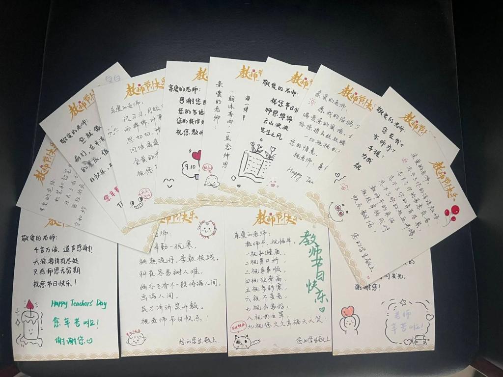 9月10日对老师们送上最美的祝福,在校园中营造节日气氛,让每个学生从自己的角度了解教师、尊重教师,并通过实际行动表达对老师的敬意,体验到尊敬老师的愉悦感受。