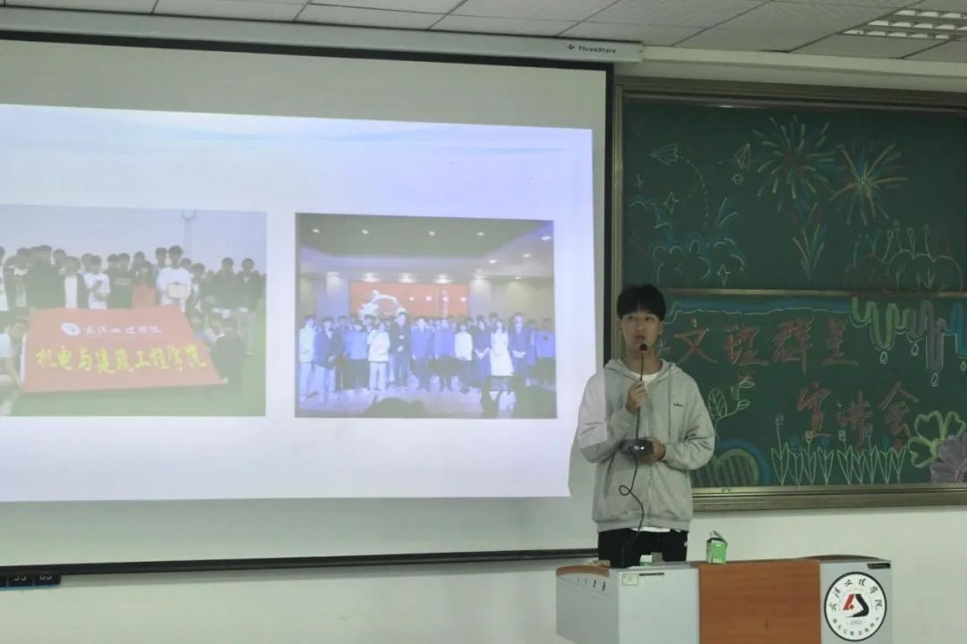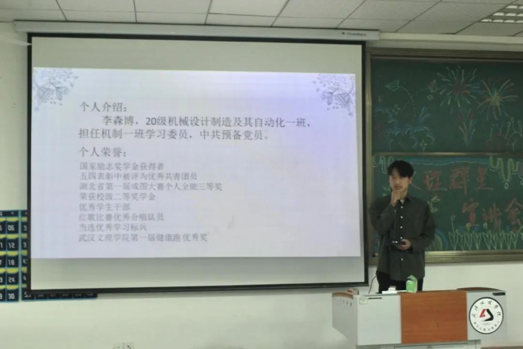 卢超同学他与大家分享了从大一至今参加过的活动以及取得的许多奖项。并鼓励同学们竞选学生会以及班干部职位,可以从中锻炼自己的社交能力以及处理事情的方法。卢超学长表示自己身为一班之长,他们班从开学至今到课率始终保持在百分百。他表示用一颗感恩的心去对待身边的人和事,和每个人成为朋友。并希望每一位同学都能为自己的梦想努力奋斗。