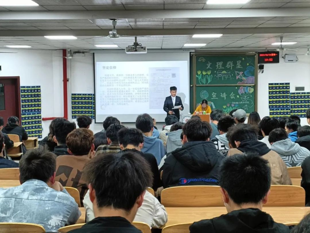 2023年4月24日、4月27日,6776永利集团在4-221召开了文理群星宣讲会。6776永利集团院长李继高、党总支书记陈静、学生处杜晓倩、学生党支部书记王茜、辅导员张雨晴、韩文霞、刘康乐莅临本次活动,学院八名优秀学生代表以及大一新生共四百余人参加此次活动。