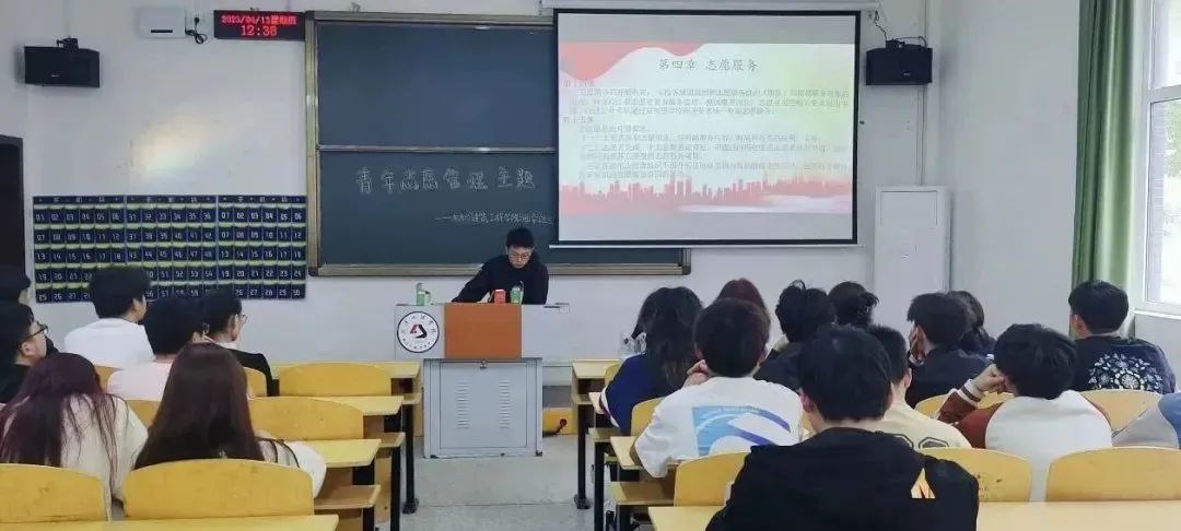 机建学院分团委指导老师韩文霞、志愿部部长徐锦锋、志愿部部长马金洋、宣传部部长黄定现以及来自机建学院各班共22位学生代表参加了本次会议。本次会议由志愿部干事张政主持,此次会议的精神强调了志愿者是指不以物质报酬为目的,利用自己课余时间,自愿为社会和他人提供服务和帮助的群体。会上也说明了未来志愿者的管理方向。