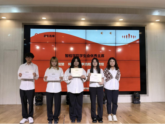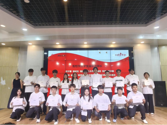 随着掌声渐息,换届暨表彰大会圆满落下帷幕。这场盛会不仅是对过往的深情回望,更是迈向新征程的激昂号角。全体师生有序登上舞台,镜头前灿烂的笑容,定格的不只是此刻的荣耀瞬间,更是智检学子踔厉奋发、薪火相传的青春剪影。这份温暖而坚定的力量,必将化作前行的动力,续写崭新篇章。