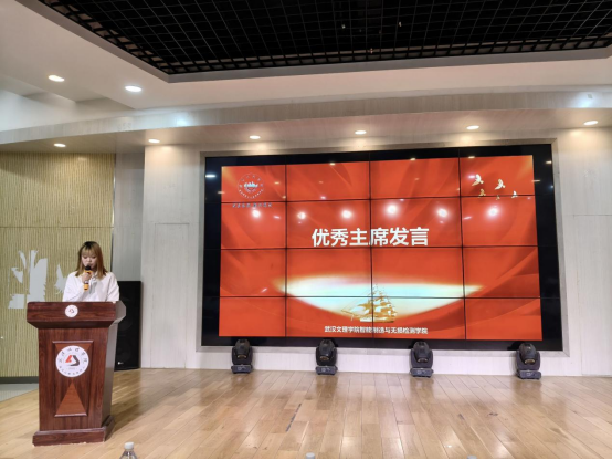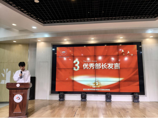 在灯光聚焦舞台中央,优秀主席代表柯宇涵以真挚话语回溯上学年工作,从活动筹备时的彻夜研讨,到坚持不懈的团队协作,字字句句饱含对伙伴的感激与对责任的坚守。优秀部长张蓬笙上台,分享创新活动策划的灵感迸发,讲述凝聚部门力量的暖心故事,用鲜活的经历诠释使命担当,赢得全场热烈共鸣。