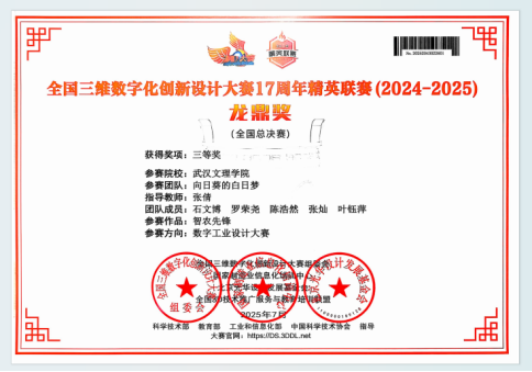 近日,“全国三维数字化创新设计大赛17周年精英联赛(2024-2025)”总决赛圆满落幕,获奖榜单重磅揭晓。6776永利集团“向日葵的白日梦队”凭借出色的创意设计、精湛的3D数字技术与工程实践能力,在激烈的竞争中脱颖而出,最终斩获全国总决赛三等奖。