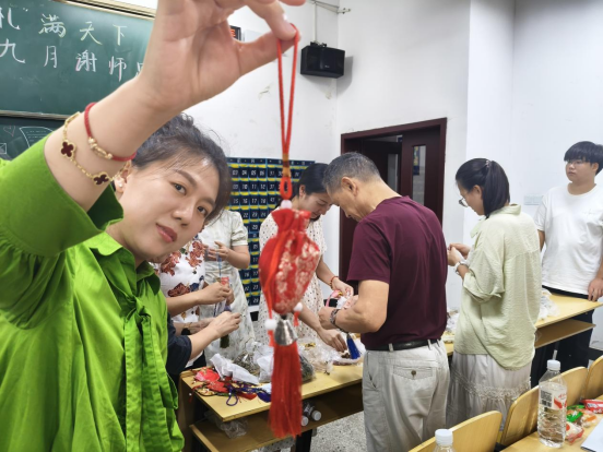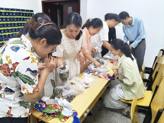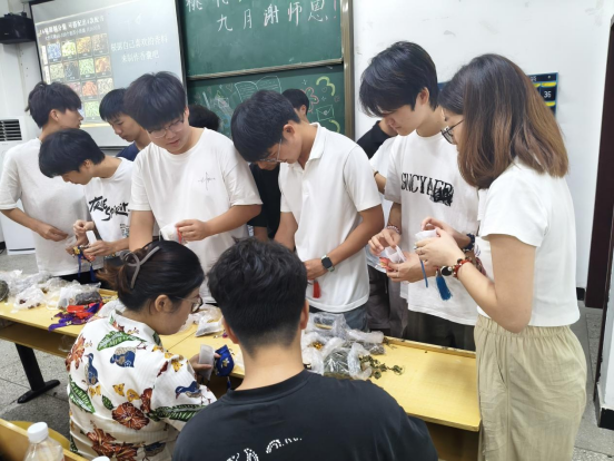 而手工制作香囊环节,堪称本次活动的“暖心亮点”。活动现场早已备好素雅的香囊布料、散发着清香的艾草与薰衣草等材料,老师和同学们围坐在一起,一边交流制作技巧,一边小心翼翼地填充香料。当一个个独一无二的香囊完成时,不仅是一份饱含感恩的节日礼物,更让传统手作的温度融入师生情,成为值得珍藏的节日纪念。
