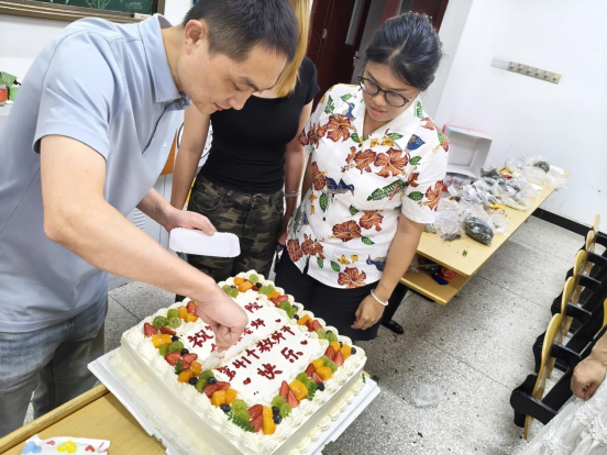 最让人期待是书记亲自分切节日蛋糕。定制蛋糕上印着“祝全体老师教师节快乐”的字样,奶油香甜与水果的清新交织在一起,格外诱人。韩玮书记手持蛋糕刀慢慢地将蛋糕切成小块,随后亲手将蛋糕依次分发给在场的每一位老师和同学。接过蛋糕的瞬间,甜蜜的滋味涌上心头,更承载着满满的节日祝福,将现场的温馨氛围推向高潮,让每一位师生都切实感受到节日的喜悦与来自学院的关怀。