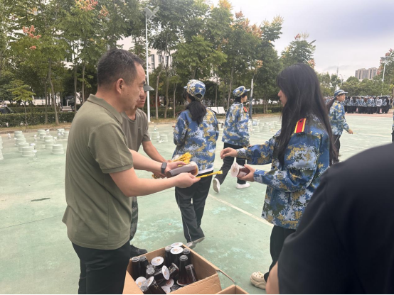 9月18日,智检学院院长李继高、党总支书记韩玮携新生辅导员、小助教走进军训场地,向参训教官与新生送上关怀,为他们送去清凉爽口的冷饮,大家训练的疲惫仿佛瞬间消散。领导们驻足训练场边,仔细观察同学们的训练状态,对新生们展现出的高昂士气与严谨作风给予充分肯定,同时叮嘱大家:军训是青春成长的重要磨砺,既要以刻苦训练强健体魄,更要在汗水中坚定信念、锤炼意志,把训练里的坚韧劲头转化为成长动力,用拼搏奏响嘹亮的青春号角,为大学生活开好头、起好步。