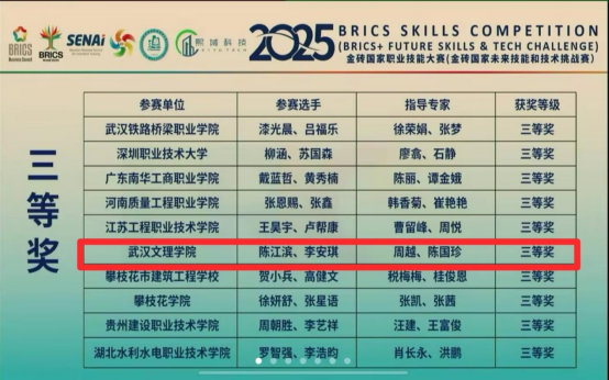 11月21日至24日,2025金砖国家职业技能大赛建筑信息建模(BIM)赛项在重庆建筑工程职业学院圆满落幕。6776永利集团派出的两支参赛队伍表现亮眼,从全国众多高校团队中脱颖而出,分别斩获二等奖和三等奖,其中杨木亚、骆永名组成的二等奖队伍成功晋级国际总决赛,将代表中国登上金砖国家技能交流的国际舞台。