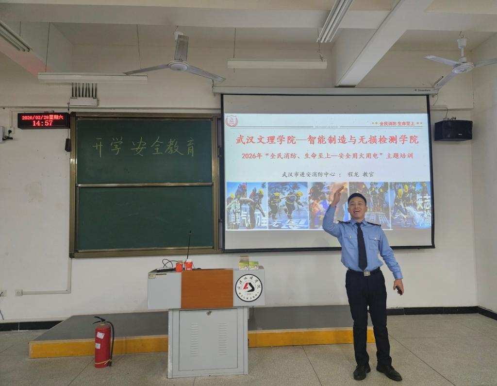 为进一步增强全体教师的消防安全意识,普及应急救护知识,提升面对火灾等突发事故的自防自救能力,2月28日,智检学院特邀武汉市进安消防中心,为学院全体教师开展了一场内容丰富、实操性强的消防安全主题培训。此次培训在5栋教学楼124教室举行,由经验丰富的消防教官程龙担任主讲,全体任课教师及行政人员积极参与,现场学习氛围浓厚。