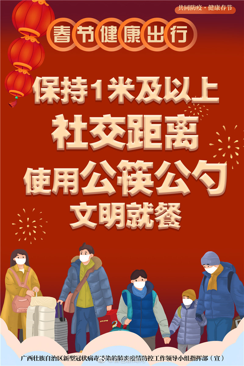 2.减少人员聚集。保持1米以上的社交距离。提倡家庭私人聚会聚餐等控制在10人以下,做好个人防护,有流感等症状尽量不参加。尽量不前往人员聚集场所尤其是密闭场所。