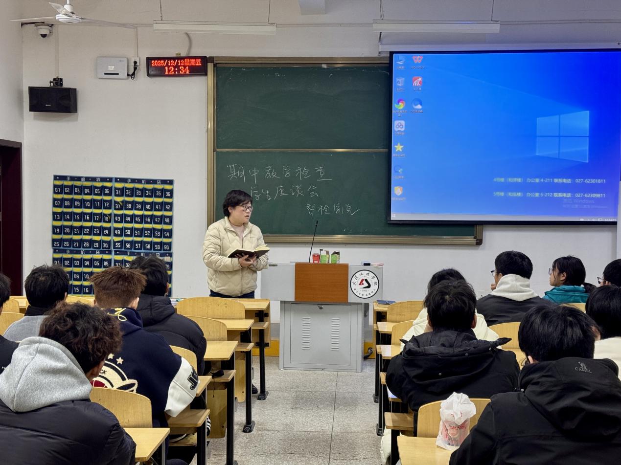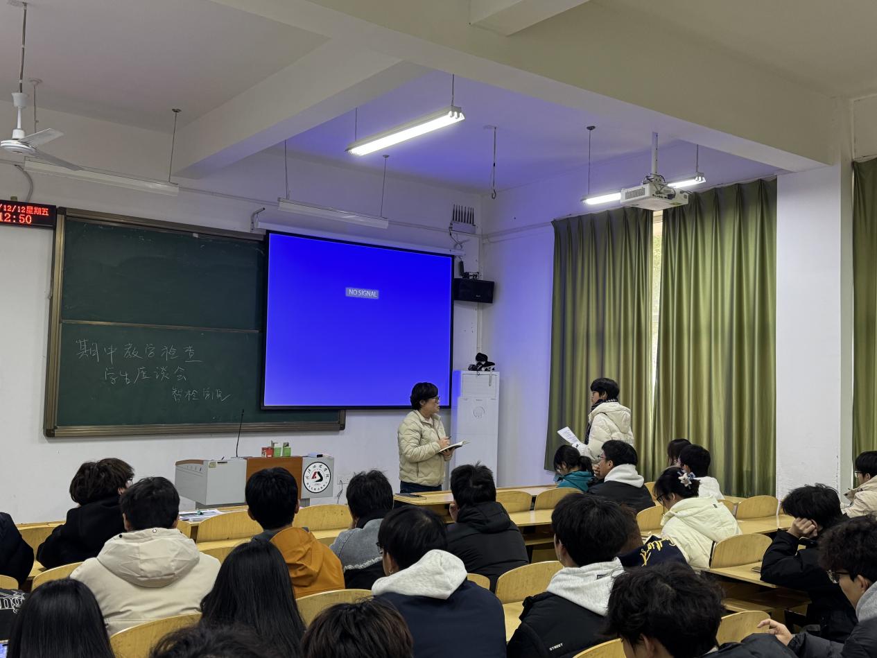 韩玮、张莹及辅导员们认真倾听每一位学生代表的发言,详细记录相关意见建议,针对学生提出的问题逐一进行耐心解答。对于能够当场解决的,现场明确解决方案与落实时限;对于需要多部门协同推进的复杂问题,明确表示将会后及时梳理汇总,与相关职能部门沟通对接,尽快给出反馈;对于涉及教学改革、培养方案优化等长期推进的工作,向学生说明当前进展与后续规划,获得了学生的理解与认可。