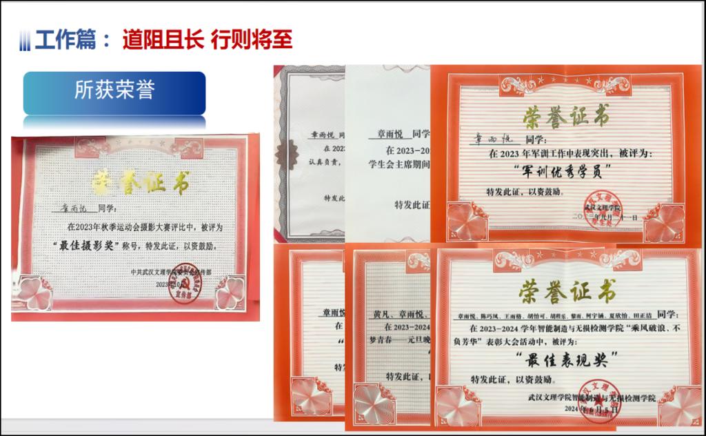 在课余时间,她努力提升个人综合能力,积极参加各类比赛,pu口袋第二课堂总分高达14.3分。同时,学术类竞赛获得了第十一届湖北省大学生结构设计竞赛校赛二等奖、省赛优秀奖、2024全国大学生创新创业能力大赛一等奖、2024全国大学生英语竞赛c类二等奖。